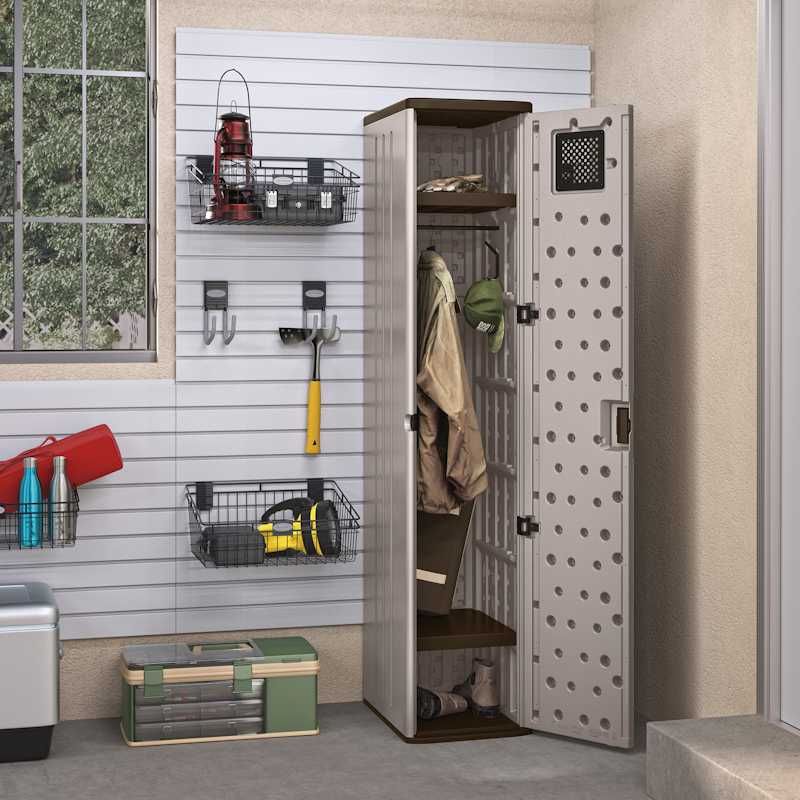The Tall Storage Locker by Suncast shatters the notion that garage organisation needs to be metal to be strong and stable.