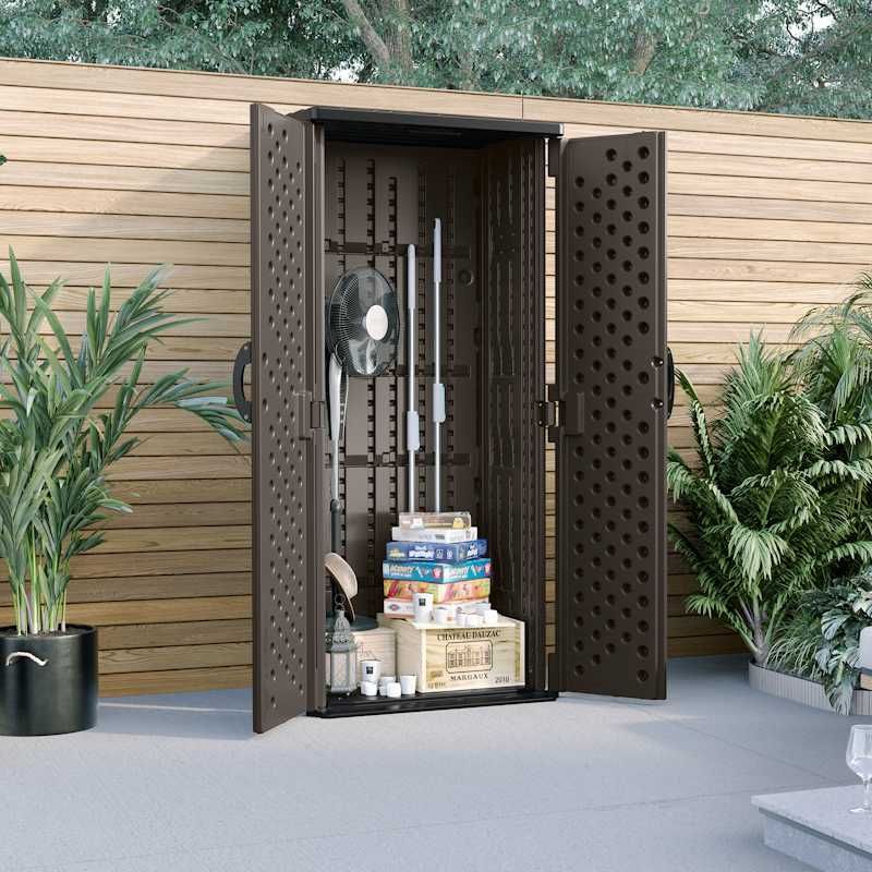 Great for organising tools, gardening gear, ladders, and more, the Suncast Vertical Storage Shed is the perfect choice for a small patio, porch, or balcony.